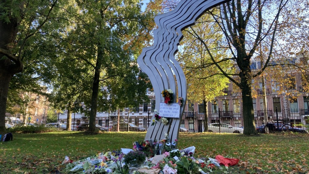 Ik trek mijn schoenen aan en stap naar buiten. Langs de kades en stoepen van een stad in ontwaking. In het park valt mijn oog zoals altijd op De Schreeuw, het monument ter nagedachtenis aan Theo van Gogh. Hij werd zestien jaar geleden neergestoken door een moslim. Het woord ‘geitenneuker’ bleek de druppel voor een verwarde man. Bij leven vonden velen van Gogh een vervelende botterik, bij dood werd hij zoals zovelen voor hem tot in de ridderstand verheven. De bijbehorende titel Ridder van het Vrije Woord nam hij mee in zijn graf. “Genade, genade, we kunnen er toch over praten,” riep hij nog voor zijn vonnis werd voltrokken door rechter-en-beul. Over van Gogh hoor je de laatste jaren nauwelijks nog wat, over de islam des te meer. Heeft die verwarde man dan gewonnen? De totale onverschilligheid van de wereld om De Schreeuw heen doet haast vermoeden van wel. Het is fascinerend en huiveringwekkend tegelijk om te zien hoe de wereld terug plooit na een verschrikkelijke gebeurtenis. Een kleine rimpel in een grote vijver, dat is alles. Voorbijgangers passeren het beeld in het park dagelijks. Allemaal met eigen kopzorgen en levens om te leiden. Wie kijkt er nog op of om naar het beeld? De tijd heelt alle wonden maar veroordeelt alles en iedereen ook tot verdoemenis.